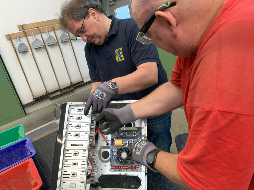 Der alte Rechner des Landrates ist natürlich nur eine Kleinigkeit für den erfahrenen Wolfgang Sturm, trotzdem nimmt er sich die Zeit, dem Politiker jeden Arbeitsschritt zu erklären, damit dieser selbst Hand anlegen kann. Axel Flader sagt von sich selbst: „Ich beschäftige mich zwar nicht so oft mit dem Heimwerken, aber die Festplatte meines alten Rechners baue ich gern selbst aus.“ Dass er damit untertreibt, beweist sein geschickter Umgang mit Akkuschrauber und Zange. Auch die pädagogische Fachkraft Kerstin Löscher attestiert Herrn Flader: „Morgen können Sie gern wiederkommen. Das klappt doch bestens hier!“