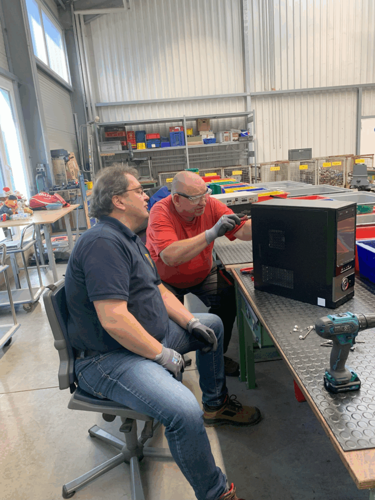 Fachlich angeleitet wird der Landrat von Wolfgang Sturm, der bereits seit vielen Jahren als Beschäftigter im Team des RBZ arbeitet und sich bestens mit der Demontage von Unterhaltungselektronik und Bürokommunikationstechnik auskennt. Hier werden pro Jahr von insgesamt 18 Beschäftigten der Lebenshilfe Celle bis zu 560.000 Kilo Elektroschrott zerlegt – eine stolze Summe, auf die das Team mit Recht stolz ist.